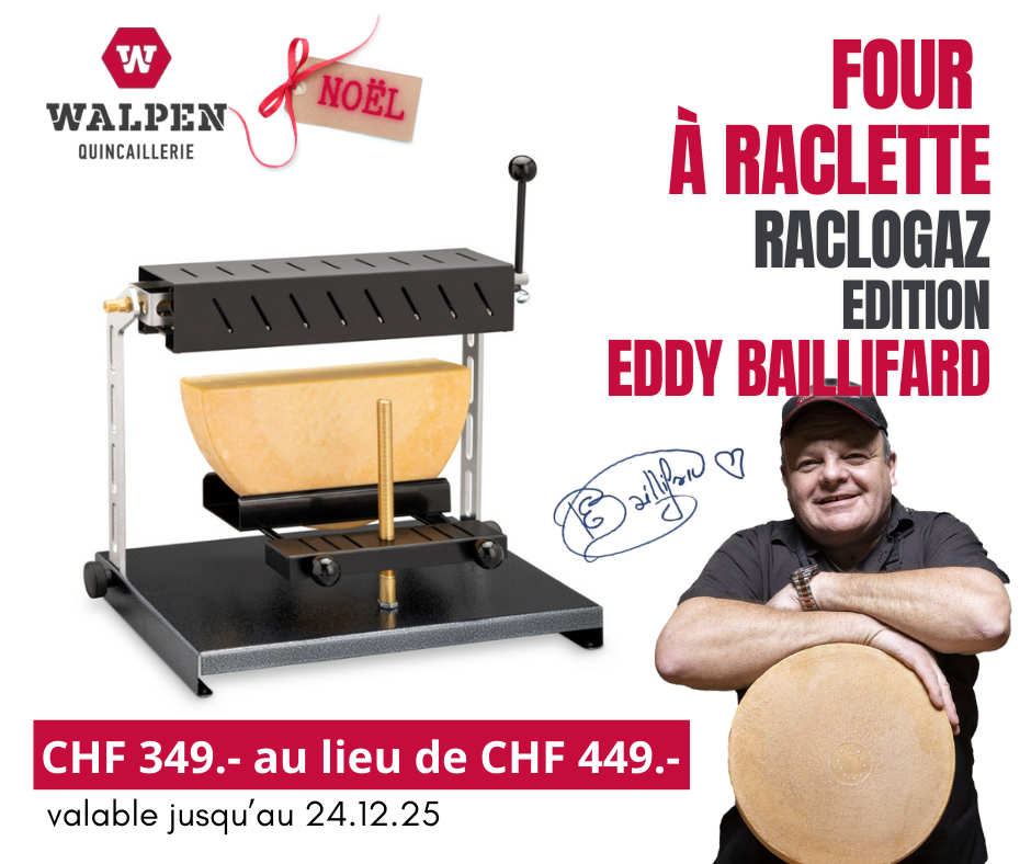 Porte-fromage « combi » inclinable pour les fromages ronds et carrés, réglable en hauteur par simple rotation autour de la tige filetée. Un levier basculant permet de faire tourner le brûleur à gaz sur 180° le long de son axe longitudinal, pour éviter de chauffer le fromage et l’appareil pendant une petite pause. Le Raclogaz se démonte facilement et peut être rangé dans un carton peu volumineux.